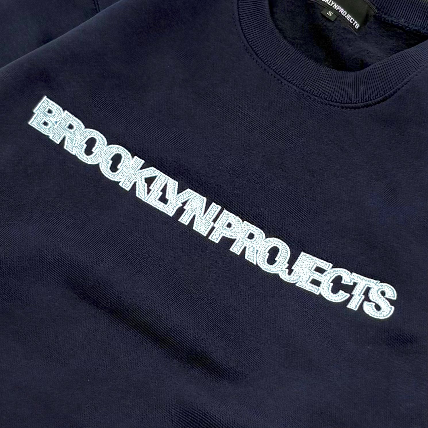 BP EMBROIDERD SLICE LOGO CREW SWEAT NAVY/LT BLUE